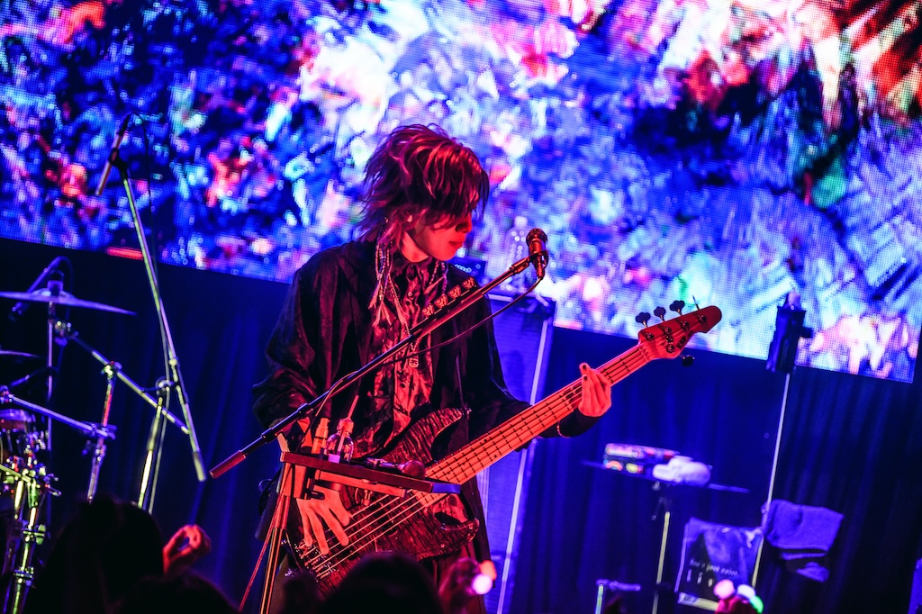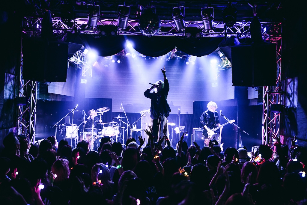 CHIYUが邪悪な声で「行こうか!」と投げかけ、ハードチューン「TRICK STER」でさらに熱量を上げると、フロアにタオルが旋回した「Infinity & Beyond」では、CHIYUとJOHNがスイッチしつつ、上手下手のお立ち台でプレイする場面や、背後からCHIYUに頭を撫でられたTohyaが笑みを見せる場面も。「さぁさぁ、お前たちの本気を見せなさい。2周年おめでとう! ありがとう!」(CHIYU)と言い、いよいよクライマックスへ。