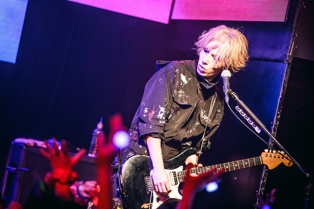 本公演の“SLAPS MEMBER”を務めたのは、プロジェクト始動時からステージを共にしてきたJOHN(G)、そして今年のイベント出演で初めてSLAPSLYに参加し、ワンマンとしてはこの日が初舞台となるTohya(Dr/vistlip)。SLAPSLY名義での最初の作品『OUTBURST 〜The best of the CHIYU〜』発表以降お馴染みとなった、オープニングSEから生演奏にスライドするインスト「SLAPSLY in da house」が幕開けを飾った。