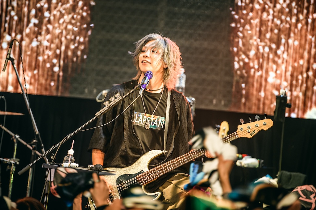 そして、先述の“Tohyaターン”、“度肝を抜く展開”となったのは、ここから。「アマランヴ」冒頭の同期が流れたところで「ちょっと止めて。お前歌え。SLAPSLYのドラムは歌わないといけないみたい(笑)」というCHIYUの振りで、ヴォーカルTohya ver.での「アマランヴ」が披露されることに。「気持ちで歌う! かかってこいやー!」とTohyaが叫び、笑顔溢れるステージとなったのち、本家「アマランヴ」が続き、場内は文字通りのお祭り騒ぎとなった。なお、CHIYUから「(Tohyaが)思ったより歌えていてビックリした(笑)。今度は俺がドラムやって、JOHNがベースやろうか」という発言が飛び出したことも付記しておきたい。さらに「今日はハッピーに終わりたいので」と話し、〈君と僕を繋ぐメロディー〉と歌う「wiΘ U」をもって、幸福感に包まれたフィナーレとなったのだった。