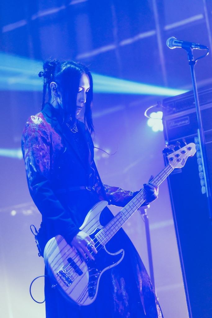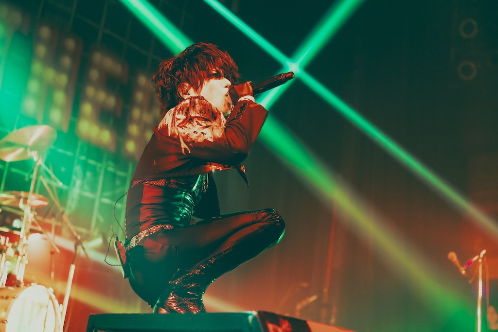 曲タイトルのごとく“殺しにかかるような勢い”を持った、ミヤの弾く完全無欠なギターソロに呼応してサークルピットがフロアに出現した「KILLEЯ」。重めな音像と逹瑯の卓越したヴォーカル技術が見事に融合し、ドラマティックな光景が生み出された「蜻蛉と時計」。90年代日本製ミクスチャーロックの雰囲気を、YUKKEのドライヴするベースプレイが絶妙に醸し出していた「Boys be an Vicious」など。ひとしきり場が盛り上がったところで、逹瑯は先ほどの一言にくわえてさらにSadieを意識した言葉をここでまた発することになったので、それについても書き記しておきたい。