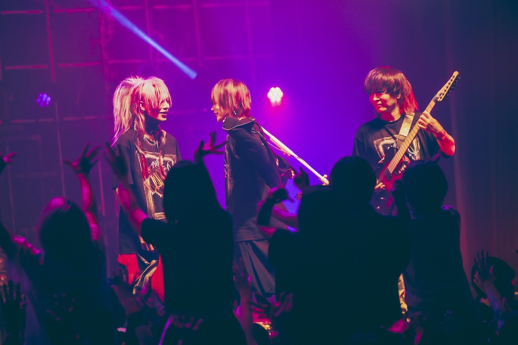 さらに、ライヴが佳境に入っていく手前のMCでは美月がMUCC・逹瑯との微笑ましい想い出を語るくだりがあり、ここで披露されたのは懐かしき「Over the Edge」における逸話だった。(※「Over the Edge」とは逹瑯が発起人となって2007年から始まり、旧渋谷公会堂の一時閉館まで続いた大晦日の年越しイベント)