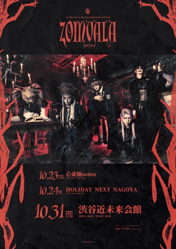 XANVALAが催す「XANVALA HALLOWEEN TOUR “ZOMVALA 2025″」。あなたも仮装をし、現実から意識を遠ざけ、ゾンビと貸したXANVALAのメンバーらと一緒に何度もぶっ倒れ、そのたびに這い上がる勢いでライブを楽しんでほしい。それでこそ「ZOMVALA」だ。