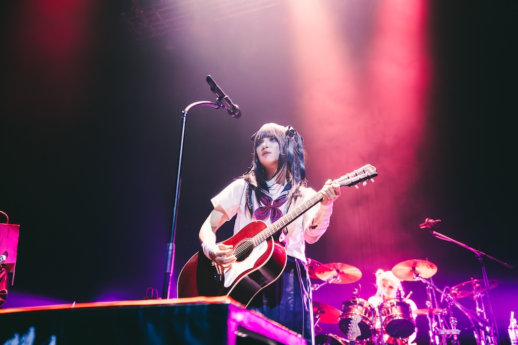 「楽しかったです。明日から、最低な日も最高な日もあると思いますが、あのハロウィンのライヴはああだったな、Sacchanがスタバの袋だったなって、思い出してもらえれば本望です」。千秋のストレートな言葉を残し、本編ラストは「神経と重力」。最後まで変化球のセットリストだったが、生々しいバンドのサウンドと咆哮でオーディエンスを圧倒。服装もメイクもどうでもよくなってしまうほど迫力のある音を放ち、強烈な余韻を残しながら4人はステージを去った。