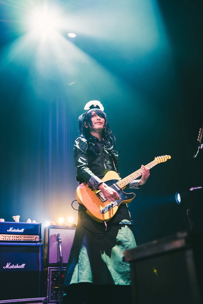 さらにフロアを歓喜させたのは、この日の濃密なセットリスト。開催中のツアーでは、最新ミニアルバム『yourself: ATTITUDE』の楽曲を中心に、彼らが今伝えたい曲をまっすぐに届けている印象だが、本公演では聴かせる曲から暴れさせる曲まで幅広く、レア曲も組み込まれたセットリストが展開された。初期からの人気曲「infection」のイントロが流れると悲鳴のような歓声が飛び交い、衣装や髪が乱れるのも構わず全力で頭を振るオーディエンス。その後も、ダウナーな雰囲気漂う「浴室と矛盾とハンマー」、切なくも美しいメロディが印象的な「白痴」など、演奏頻度の低い名曲を連発。MCでは千秋が「リハーサルしてないから実力が試される」と赤裸々に告白する場面もあったが、エモーショナルなボーカルと貫禄に満ちた演奏で、オーディエンスを着実に引き込んでいた。
