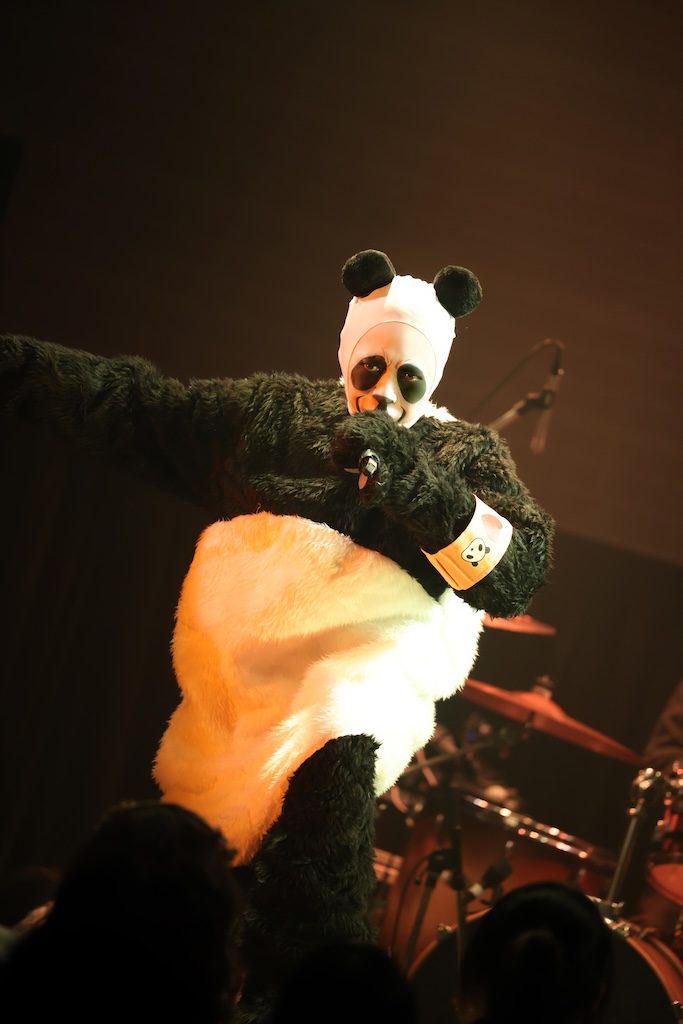 トップバッターを務めたのは、Ruizaの地元・関西の同志であり、1年前の「BURNING SOUL vol.1」にも出演したナナ。この日はハロウィン企画ではないものの、山沖怜(Vo)はパンダ、SARSHI(G)は五条悟、AKI(B)は夏油傑、yusuke(Support Dr)は狗巻棘と、全員が『呪術廻戦』のキャラクターに扮して登場し、早速フロアをざわつかせた。