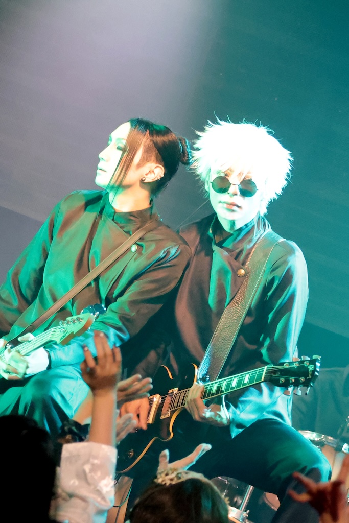 なお、「Dear」ではSARSHIとAKIが寄り添ってプレイする場面が見られたが、これは、同級生でありライバルという『呪術廻戦』の二人の関係性を踏まえたものだったという。なんとも抜かりのない粋な趣向を交えながら、彼らのセンスが光るステージとなった。