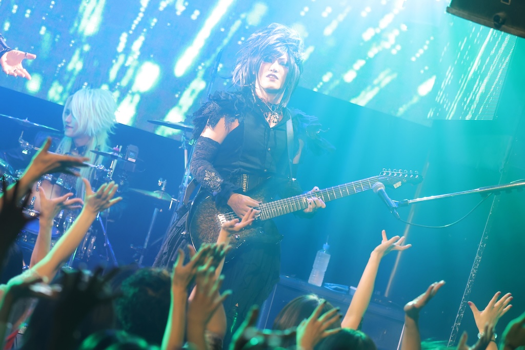 続いてはRuizaの盟友、DのギタリストHIDE-ZOUがソロプロジェクトとして登場。Kenji(G)と共に二人編成でステージに立ち、再会の願いを歌う「…for ever」、身振り手振りを交えながらの歌唱が印象的だった「Wind of Eternity」と、序盤ではギターヴォーカルでのプレイを魅せた。