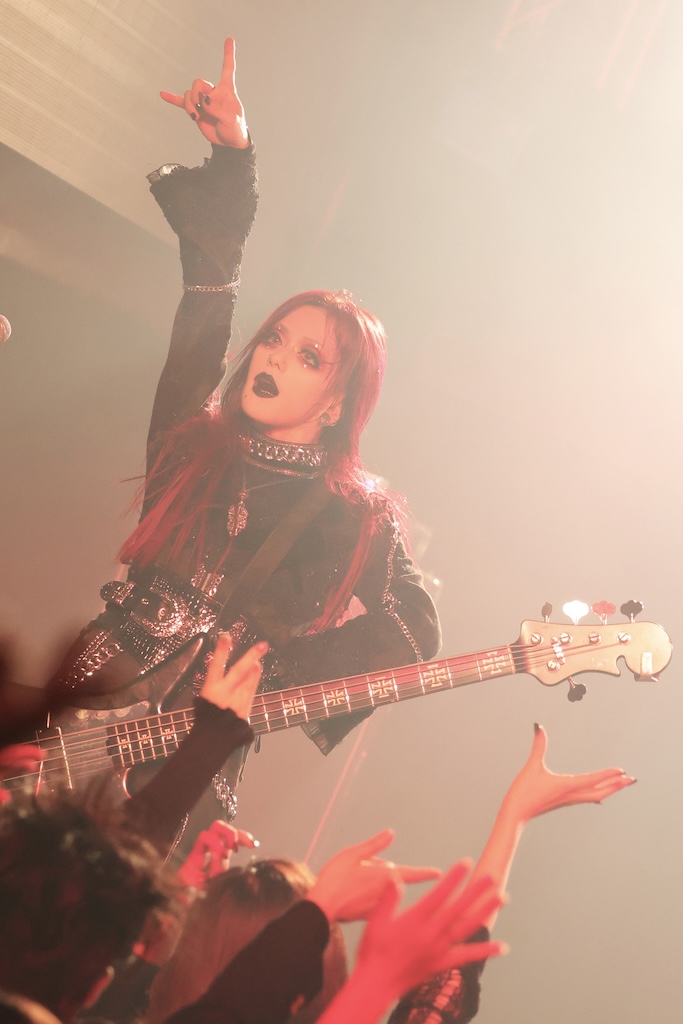 ど頭から煽り曲「グルグル巻き」で暴れ倒したのをはじめ、天音と湊人がツインのギターソロをハモった「…嗚呼、無様」、Tetsuya(B)、LANA-ラナ-(Dr)のソロ回しも含む「汞」など、メンバーそれぞれの見せ場もありながら、最終ブロックでは「ヒトニアラズ」「ごめんなさい」を連投。とにもかくにも運動量の多い怒涛のステージを繰り広げた。