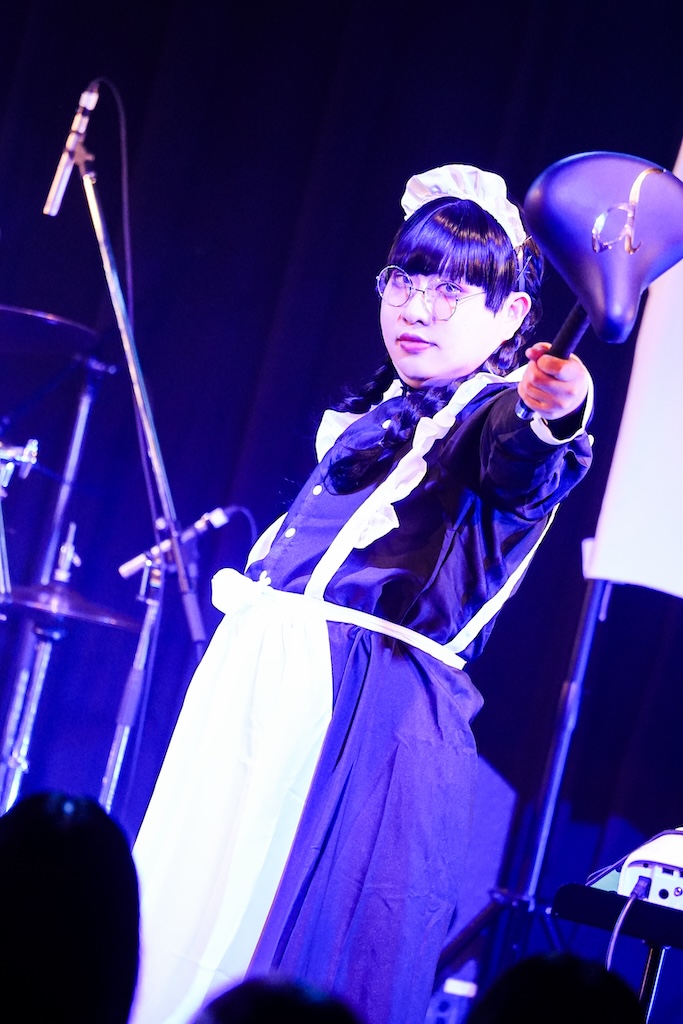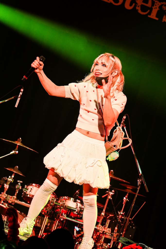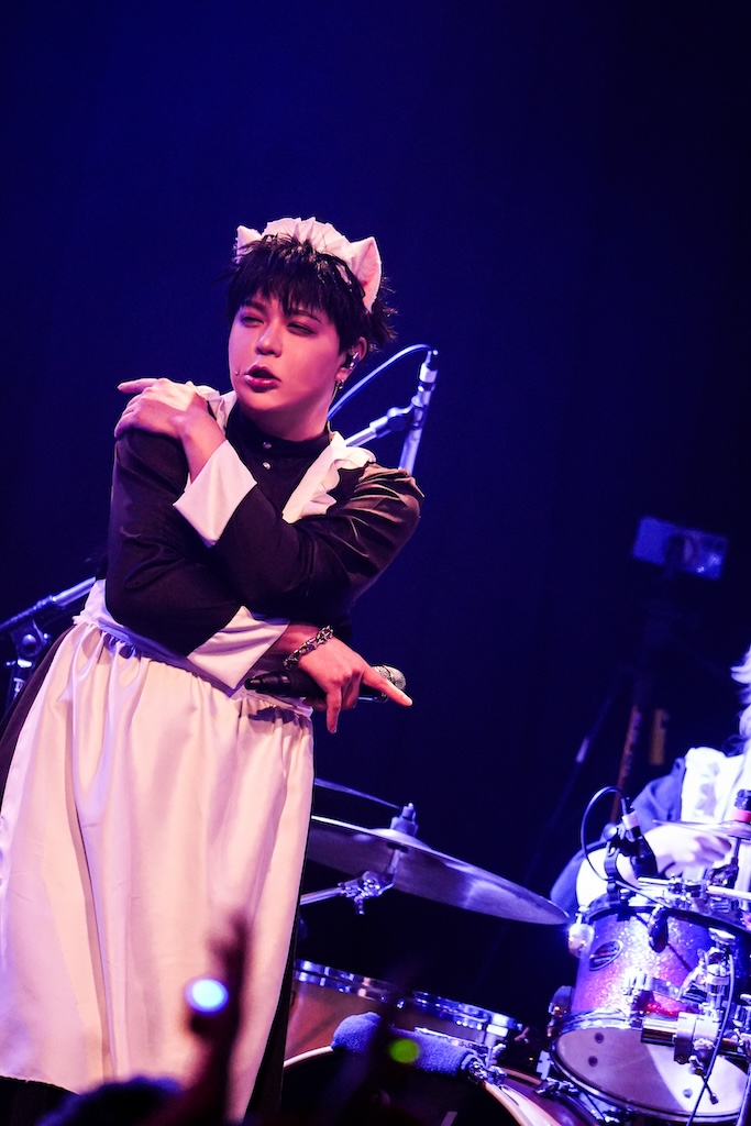 そう、先ほどのワケあり風女子は彼だったのだ。ソロでの出演とはいっても歌う曲はゴールデンボンバーのもので、サビで客席フロアに一体感が生まれた「元カレ殺ス」に始まり、ヘドバン大会が繰り広げられた「デスメンタル」などのキラーチューンが揃えられており、軽妙な話術もあいまって我々は瞬く間にキリショーワールドへ呑み込まれてしまったのであった。会場の特性上ジャンプ規制はあったが、ラストの「女々しくて」で観客全員参加の大合唱となった光景も実に天晴れ。これぞ茶番風極上エンタテインメントなり。
