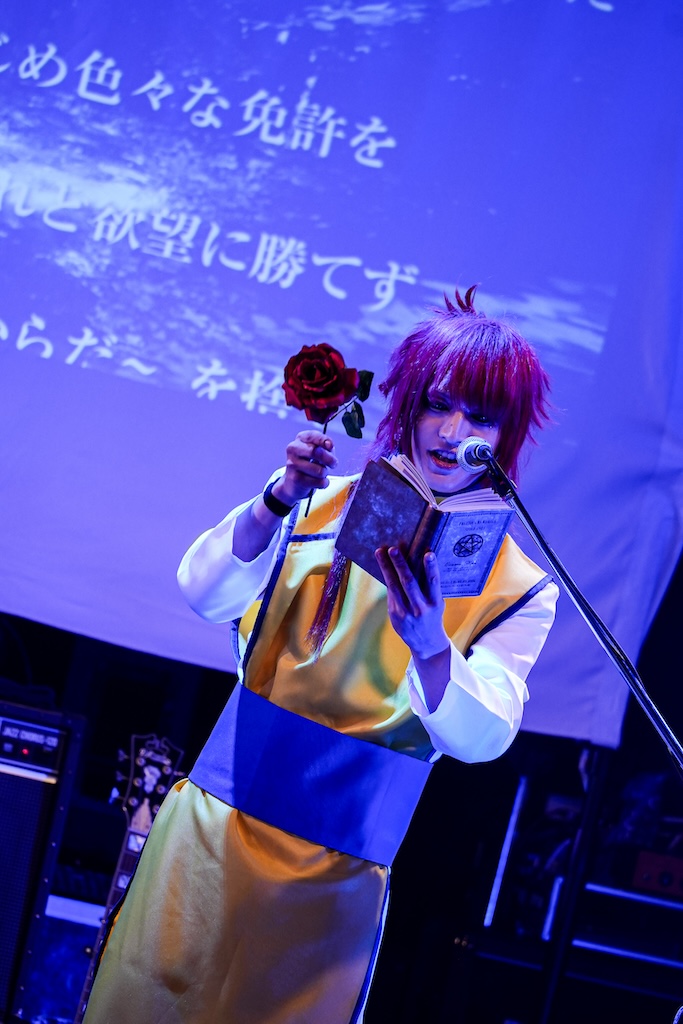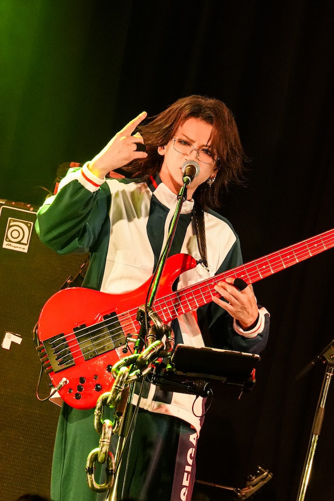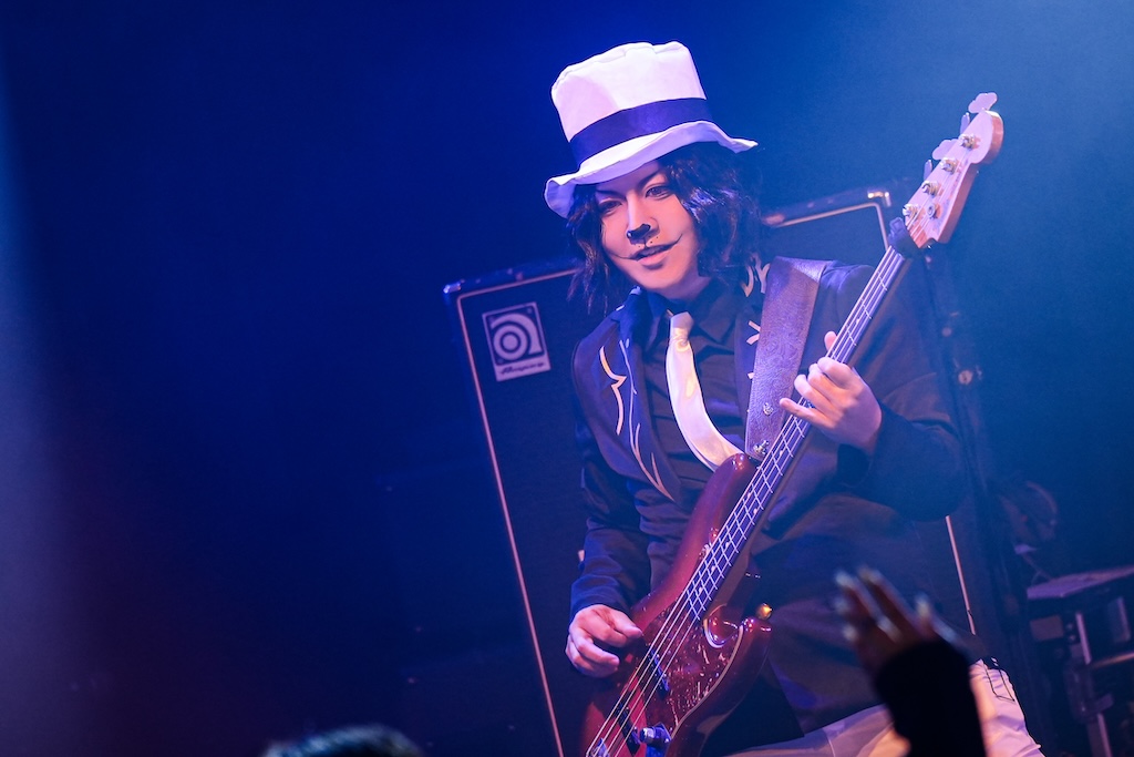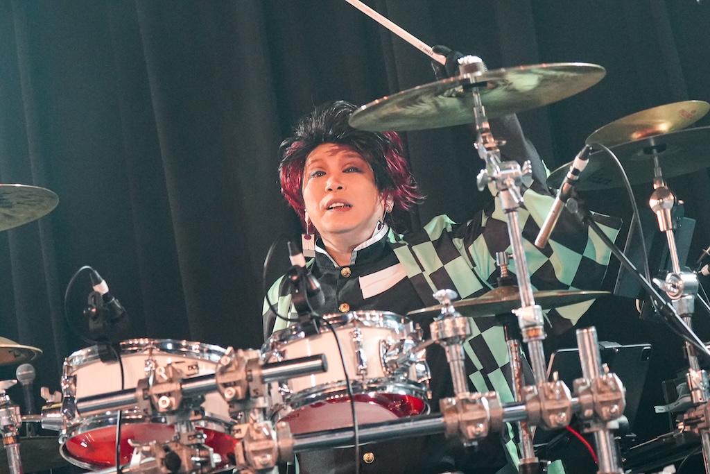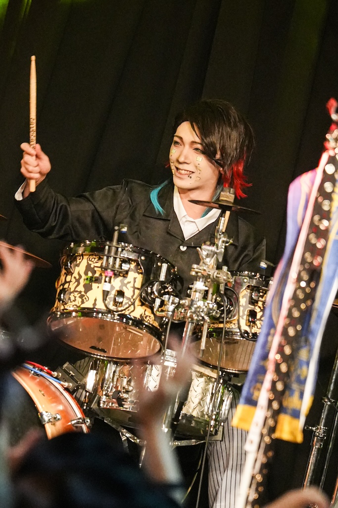 なお、SHIGE ROCKSは童磨、TENZIXXが鬼殺隊・村田、JIRO 6はジローつながりで竈門炭治郎の姿を呈しており、最新シングル曲「狂鳴-Resonance-」など計5曲を鬼気迫る音で聴かせてくれたのだった。そして、カラコンを入れた紅き瞳でMSTRがテクニカルなプレイを連発していた様は、もはや血気術のようにも感じられた気がする。流石!!