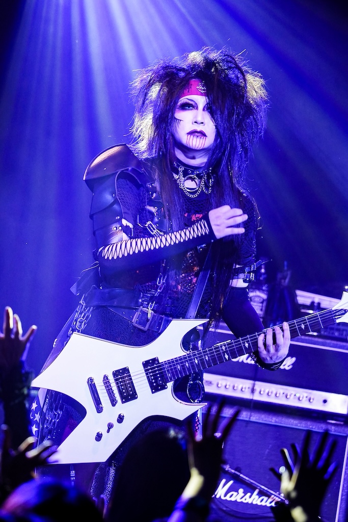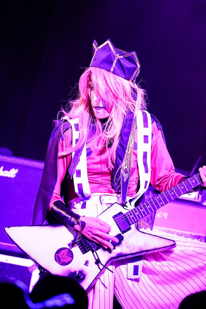 まさかのLAメタル復古大号令が、この令和の時代に実現するとは! 昨年クレモンに初参加しくれた際には“ブラックメタル”をテーマにしたステージングで漆黒の夜を体現してみせたMoi dix Moisが、今年の仮装コンセプトとして掲げたのはMSTRも大好きな“80’s LAメタル”。見たところMana様は使っていたワーロックのギターも含めてMÖTLEY CRÜEのNikki Sixx風、RYUXはTwisted SisterのDee Snider風、 HAYATOがMÖTLEY CRÜEのTommy Lee風を意識したスタイリングとなっていたようだが、SugiyaはStryperのイメージ、Sethは自分なりに思う概念としてのLAメタルを具現化していたらしい。