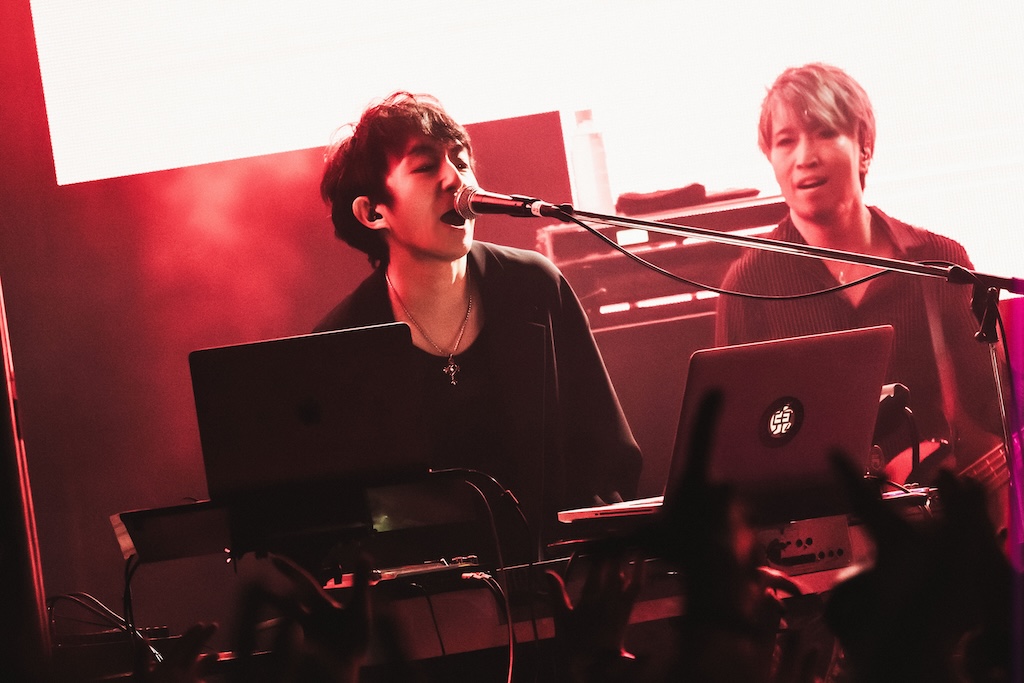 暗転を挟み、空気を一変させたのは「THE LAST DAY」。いつか訪れる最期の日を思い、歌に愛を込めることを綴ったこの曲が、いわば当夜のNUL.のステージにおける第2章の始まりを告げた。次いでメンバーコールを含む鉄板の「Dictate」で一気にギアチェンジを図ると、ドラマティックな構成が魅力的な「SUNBREAK」が前後を繋ぐフックとなり、いよいよ終盤へ。