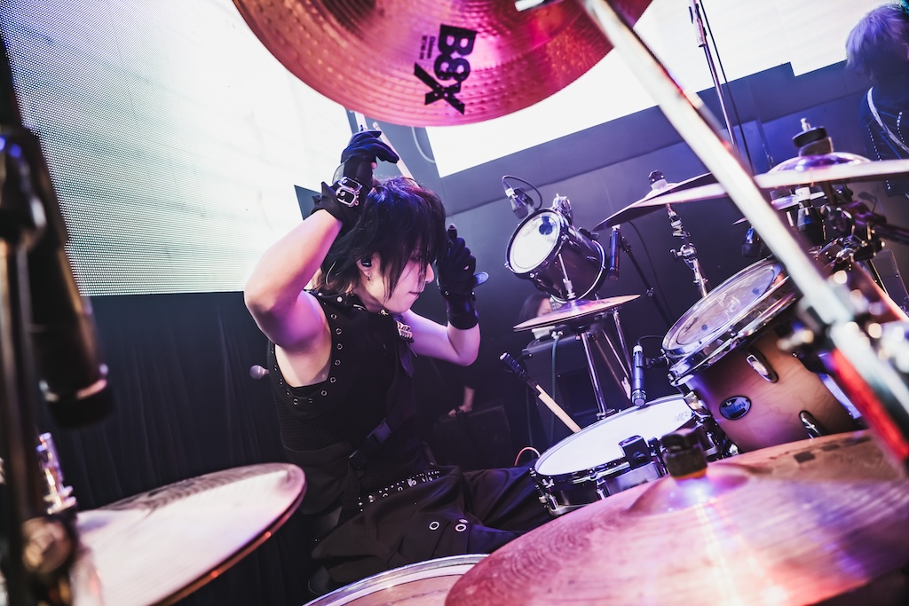 先攻のNUL.は、臨戦態勢と言わんばかりに煽りこそあれど和やかなMCは皆無で、全11曲をプレイ。ダークな「八咫烏 -Yatagarasu-」で重厚感のある幕開けを魅せると、岸によるデジタルビートが映える「Hyena」でテンションを急上昇させ、NUL.の始まりの曲「XStream」を投下。お立ち台に上がり、バックライトに照らされたHIZUMIが〈枯れ果てた声刻め 生きた証を〉と歌う姿は、この日だからこその説得力を帯び、いっそうのリアリティをもって響いた。