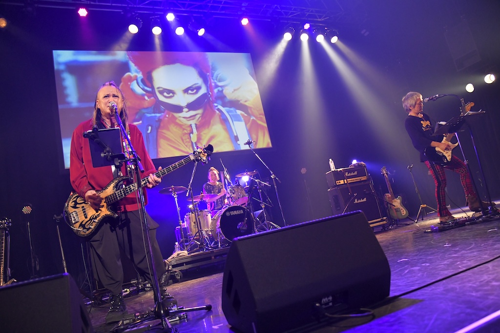 幕が開くと、ドラムセットの前にメンバー3人が座っている。木村世治(Vo&Dr/ZEPPET STORE)、Chirolyn(Vo&B/hide with Spread Beaver)、高野哲(Vo&G/ZIGZO)の3人からなる全員ヴォーカリストのスリーピースバンドSillysのhide Birthday Party初参戦。とはいえ、木村世治とChirolynはこのイベント常連組なので、新鮮でありつつ、安心感も共存するという不思議な感覚である。ドラム、ベース、ギターのシンプルな音の上に3人の個性が違うヴォーカルがのり、ソロで歌ったり、ツインヴォーカルになったり、ユニゾンだったり、コーラスだったり、曲によってパートによってメインヴォーカルが変わる。その表情はまるで少年のようにとても生き生きとしていて、自由で楽しいロックンロールの初期衝動を彼ら自身が楽しんでいることが伝わってくる。3人で和気あいあいと「ピンク スパイダー」を演奏したあと、最後にChirolynの「懐かしいの、いっちゃうよ〜!」という声でソロの代表曲「君は変わっちまった」をプレイ。強烈なインパクトを残して、彼らのライブは幕を閉じた。