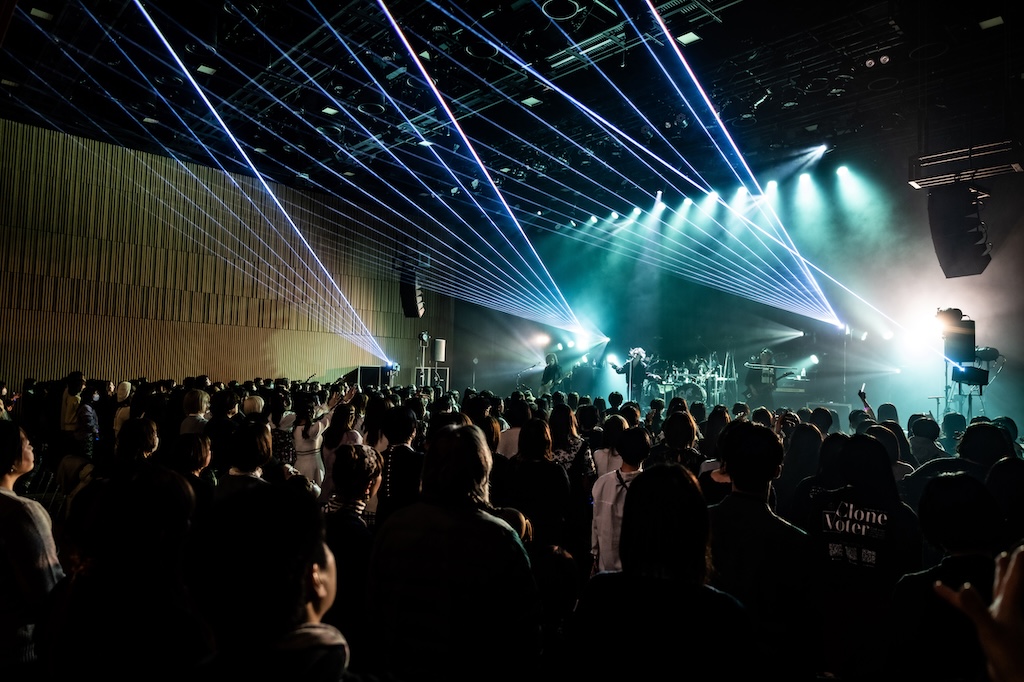 ZEROのベースソロ、kazuyaのギターソロも映えるトリッキーなダンスチューン「PURPOSEFULLY」をフックに、打ち込みとバンドサウンドの緩急が魅力的な「黎明」、温かさと切実な感情が交錯する「眠れる森の前奏曲 〜REVOIR〜」と、カラーは異なれどフロアの空気を掌握する2曲でKEKEのエモーショナルな歌声が響き渡った。