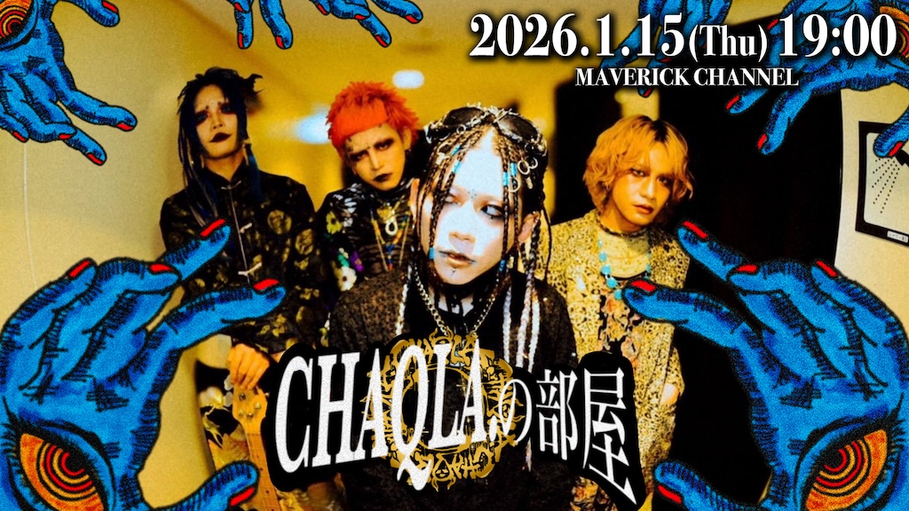 鮮烈なヴィジュアルとスピリチュアルな世界観で、シーンにおいて唯一無二の存在感を放つヴィジュアル系バンド・CHAQLA.。彼らが、1月15日(木)19時より、MAVERICKチャンネルにて月1回の生配信番組『CHAQLA.の部屋』を始動させることが決定した。