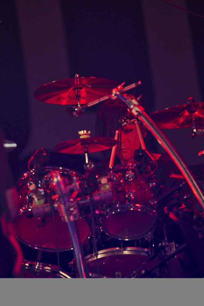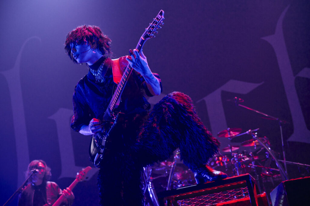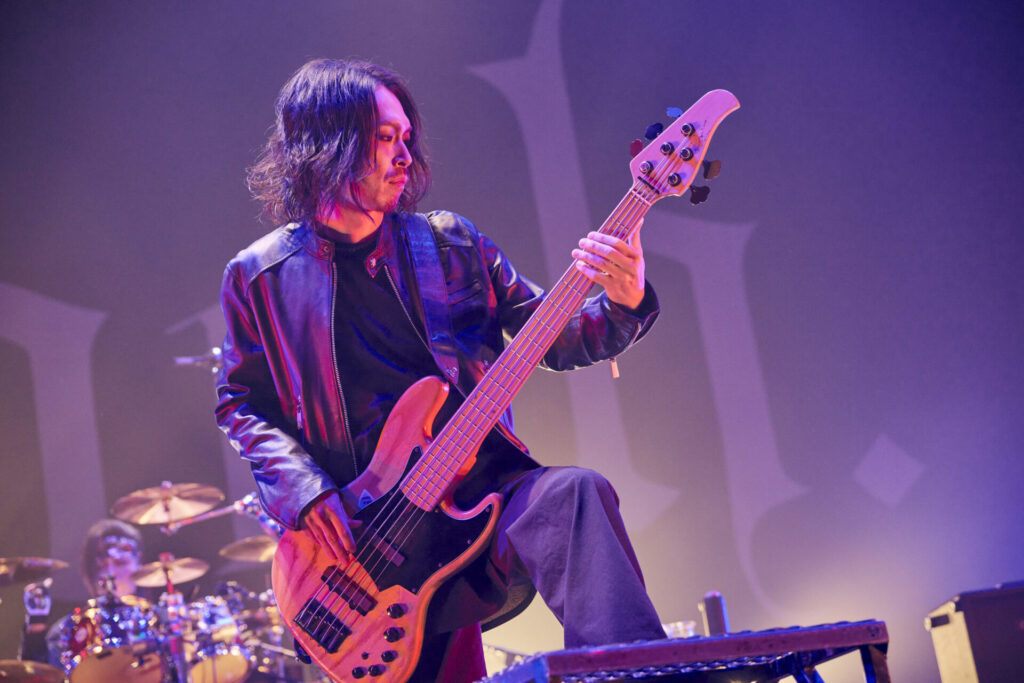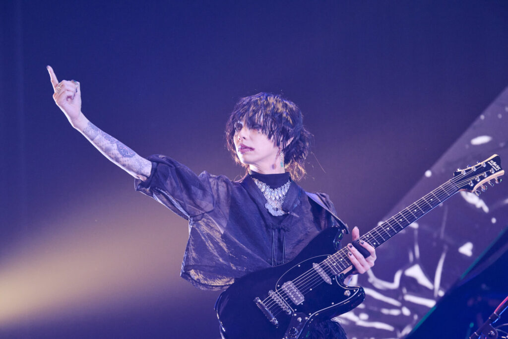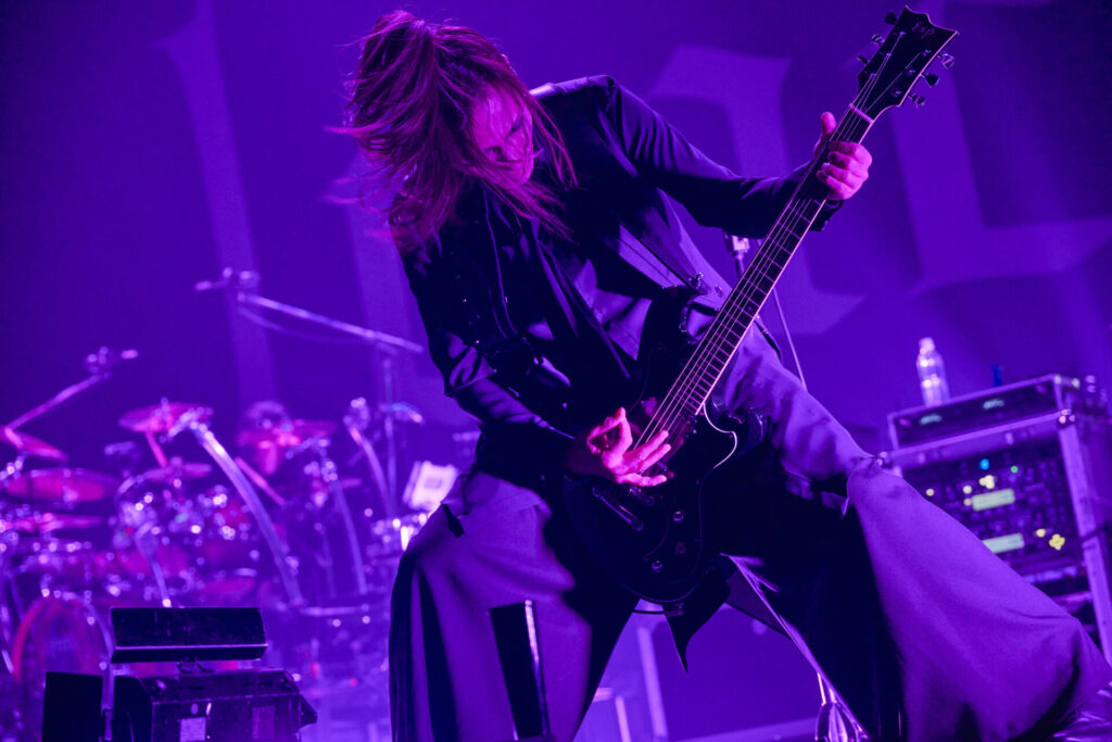 オープニング曲が着地点に達すると、余分な空白を設けることなくフロントマンの葉月は「遊ぼうぜ!」と告げ、次なる“斑”へと雪崩れ込んでいく。こちらは2024年リリースの『FIERCE-EP』からの選曲だ。この序盤2曲の誕生時期には約14年もの時差があるわけだが、そこには彼らの音楽における本質的な部分が不変であることを無言のうちに伝えるかのような趣が感じられる。そして、さらに”GREED”、“EVOKE”へと畳み掛けていく展開は、まさに「これぞlynch.のライブ」といえるもの。コンパクトに研ぎ澄まされた楽曲が間断なく連射されるからこその破壊力が、そこにはある。