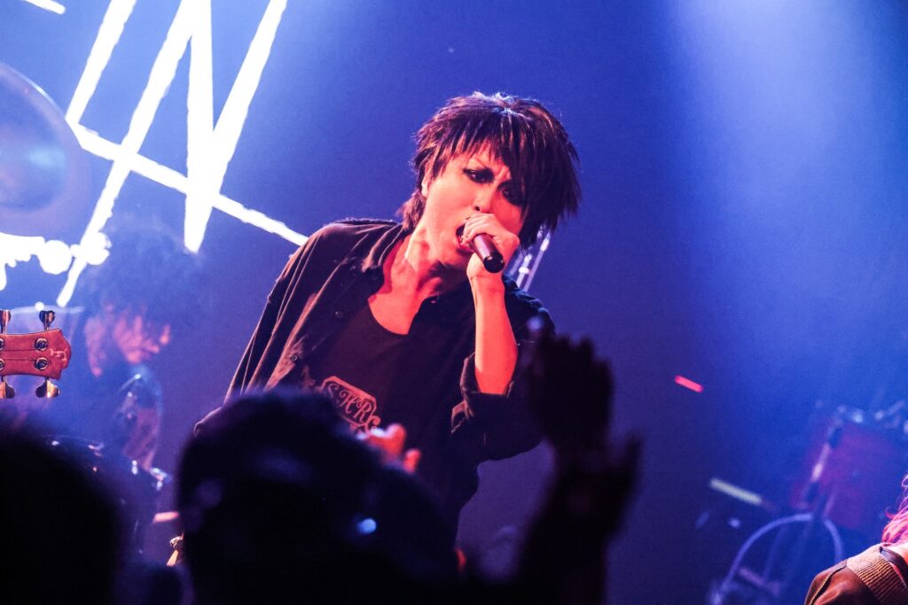 起伏のある構成が魅力的な「ANIMA」、キャッチーなメロディが光る「イノチノアト」、縦ノリでフロアを揺らした「イライザ」、楽器陣のトリッキーなプレイが冴え渡る「鴉」、デジタルビートを軸にハンドクラップが鳴り響いた「サダメ」。ラウドロック、ミクスチャーを基盤とした多彩なナンバーに、オーディエンスは抜群のノリで応えてみせた。最後には、「もうちょっと笑顔くださいよ! 思いきり楽しもうぜ! 限界突破できますか!?」というeisuke(Vo)の言葉を合図に、当夜唯一の既存曲「限界シンギュラリティ」が放たれ、フロアの熱量を最高潮へと引き上げたのだった。