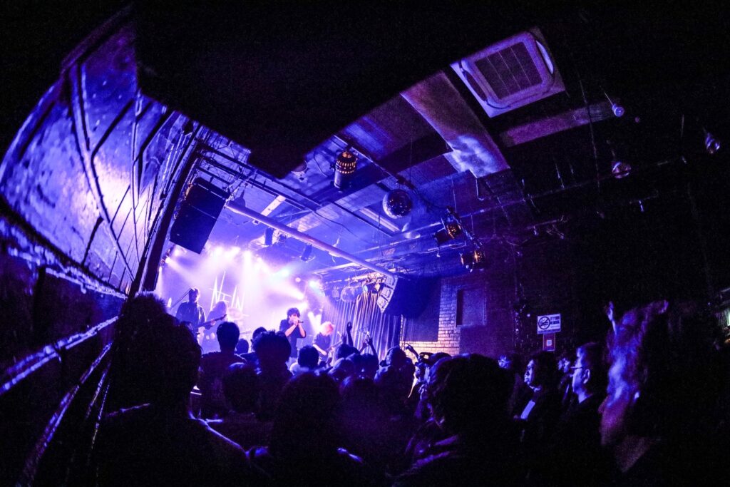 開幕前から威勢のいい声が上がっていたのはNEiN。Ruizaの音源制作にも携わっている舜(G)、かつてDistrayでRuizaと活動を共にした拓馬(Dr)を擁するバンドだ。彼らは、なんと6曲中5曲が初披露の新曲という攻めたメニューで展開。6月にリリース予定のフルアルバム『Überschal』に収録される新曲群を、世界最速で体感する貴重な機会となった。