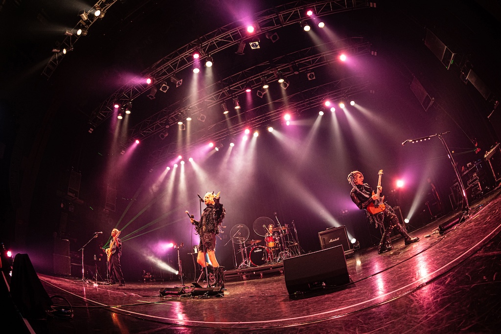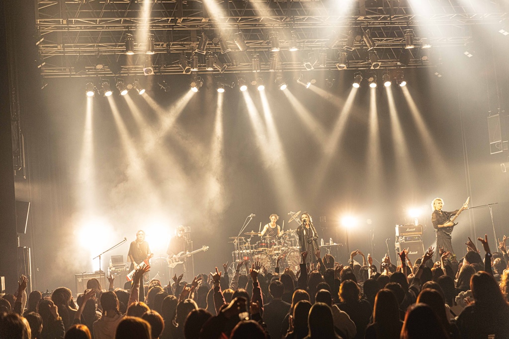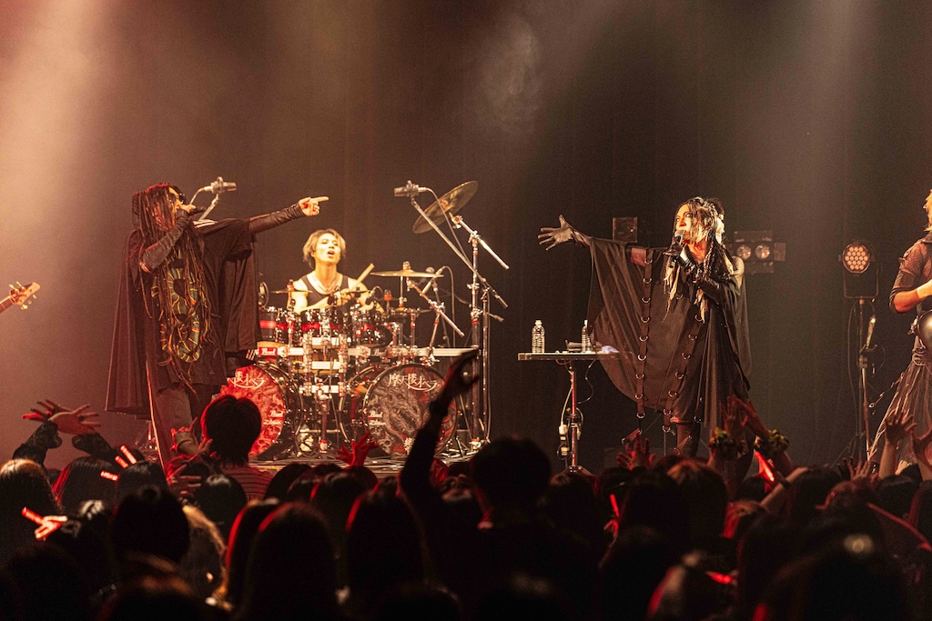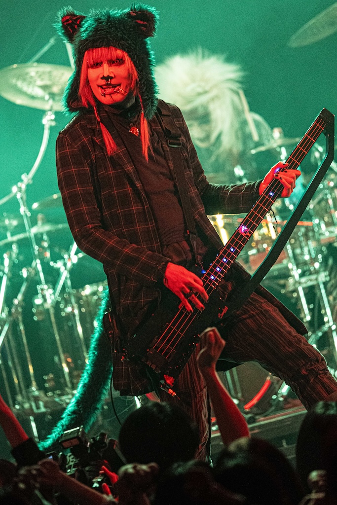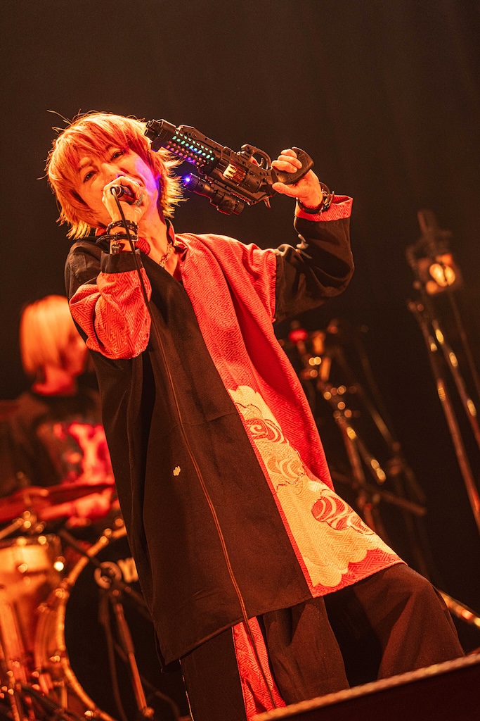 「こんばんは、machineというバンドです。今日は平日に拘わらず、こんなに沢山来てくれて、ありがとうございます」とHAKUEIが挨拶。今年8月に東名阪ツアーを行うことを告げた後、「俺達の生き様を見てください。命尽き果てるまでmachineをやろうと思っています」という熱い言葉に続けて「Ash 2025」や「猿の惑星 2025」「010(ZERO-ONE-ZERO) 2025」などが演奏された。デジタル・テイストとパンクが香るハードネスを絶妙にバランスさせたmachineのラウドなサウンドは独自の魅力に満ちているし、妖艶なHAKUEIとクールなKiyoshi、ワイルドなseek(B)、常に全身全霊のドラミングを展開するCHARGEEEEEE…、ミステリアスなCOLA(Mp)という個性的なメンバーがひとつになって生まれる強固なケミストリーも実にいい。“machineはまさに唯一無二の存在だな”と、あらためて感じずにいられなかった。