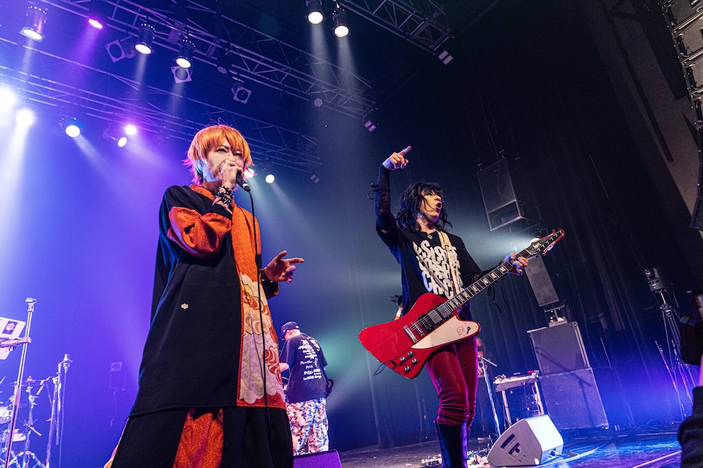 Luv PARADEは「FREAK PARADE」や「SHOOT IT DOWN」「MIDNIGHT SUN」といったハイエナジー・チューンを続けて聴かせるライブを披露。TAKAの力感とエモさを兼ね備えたヴォーカルとKaryuのヘヴィなギターを軸にした彼らの楽曲は内側に向かうヘヴィネスではなく、外に向かって弾けるアッパーさを放っていることが特色で、ライブ映えのよさは群を抜いている。Kiyoshiが参加した「Take On Me」(a-haのカバー)を経て、ライブ後半では「TONIGHT,TONIGHT,TONIGHT」と「ARROWS」を続けてプレイ。爽快感を湛えた轟音とアクティブなパフォーマンスで激しくいき上げる流れが決まって、Luv PARADEのライブ後の場内は心地いい余韻に満たされていた。