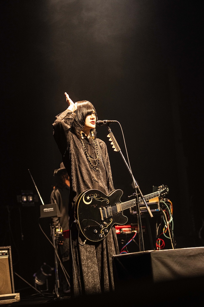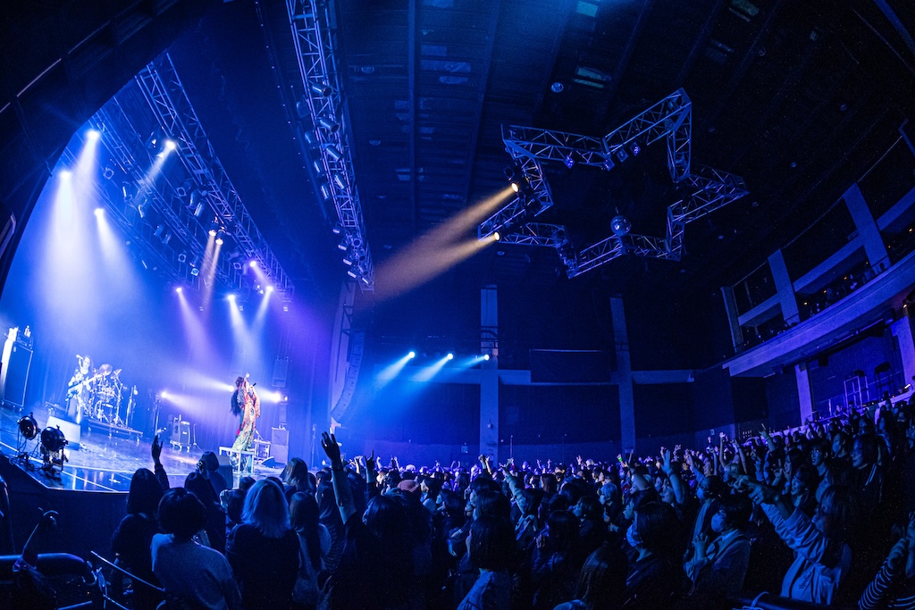 陰りを帯びたオープニングSEが流れる中ステージに姿を現した有村竜太朗は、「≒engeki」からライブを開始。軽やかな哀愁を湛えたサウンドと儚さを感じさせる歌声が生む深みのある世界は非常に魅力的で、オーディエンスが深く惹き込まれたことが如実に伝わってきた。その後は内向的な歌中と力強いサビの対比を活かした「猫夢 / nekoyume」やせつなさと疾走感を融合させた「くるおし花 / kuruoshibana」などをプレイ。表現力に富んだヴォーカルはもちろんバックを務めるDEMONSTRATIONsの演奏も上質で、特に色彩豊かなアプローチ/プレイで楽曲のエモーションを増幅させる悠介(lynch.)のギターワークは見事なものだった。ライブ後半ではHAKUEIを交えたスタイルで披露したパンキッシュな「≒jukyusai」と力強くドライブする「≒fuyuu」を続けてプレイ。徐々に温度を上げていくライブ構成が見事に決まって、場内はいいムードで盛り上がった。