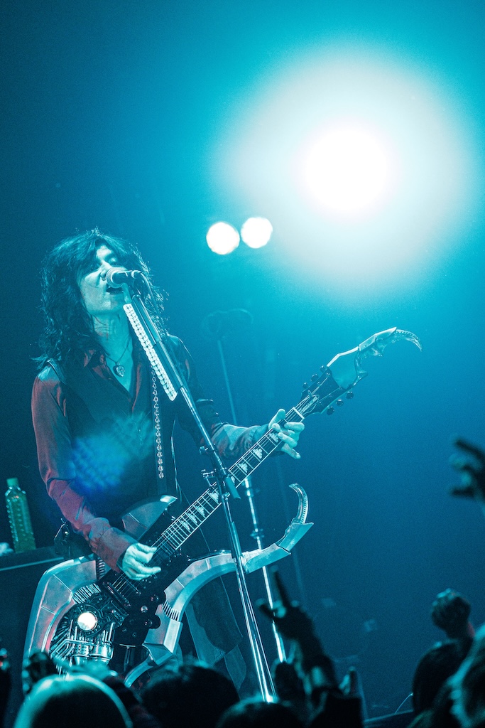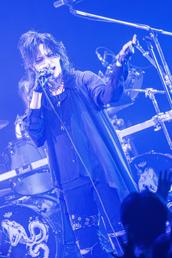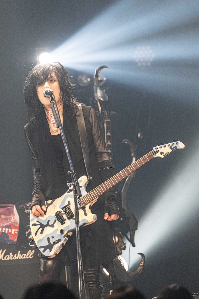 LM.Cに次いでステージに立ったGargoyleは「ハレルヤ」を皮切りに、「完全な毒を要求する」や「影王」といった高速のメタル・チューンを相次いで披露。絢爛な衣装に身を包み男気に溢れた歌声を聴かせるKIBAが放つ鮮烈な存在感と重厚に突き進むハードなサウンドが生む説得力は絶大で、結成から39年、ライブ本数1500本あまりという歴史の重さを感じずにいられない。ライブを締め括った「DESTROY」はHAKUEIを加えた編成で披露され、HAKUEIがただ単に歌うだけではなく世界観を深める役割も務めたことからは、彼のGargoyleに対する深いリスペクトが感じられた。そして、Gargoyleはそれにふさわしいバンドと言える。長年に亘って活動していながらレイドバックすることなく、現代のロックにふさわしいスピード感を纏ったヘヴィメタルで勝負する彼らの魅力を再確認できたステージだった。