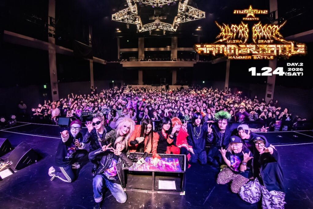 その後は団長によりJILUKAのRicko、Psycho le CémuのDAISHI、Luv PARADEのTAKA、摩天楼オペラの苑がステージに呼びこまれて「ピンクスパイダー」(hide)が演奏された。豪華な顔ぶれによるセッションということに加えて、「ULTRA BEAST HAMMER BATTLE」のためにKiyoshiがhide with Spread Beaverがライブで実際に使用している「ピンクスパイダー」のデータを用意したという胸アツなサプライズに客席から大歓声が上がる。力強さとエモさを併せ持ったサウンドと豪華な顔ぶれが並び立ったステージに場内が笑顔で染まるという華やかな情景を描き出して、「ULTRA BEAST HAMMER BATTLE」の初日は幕を降ろした。