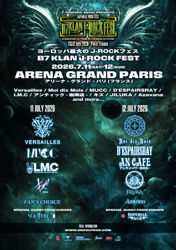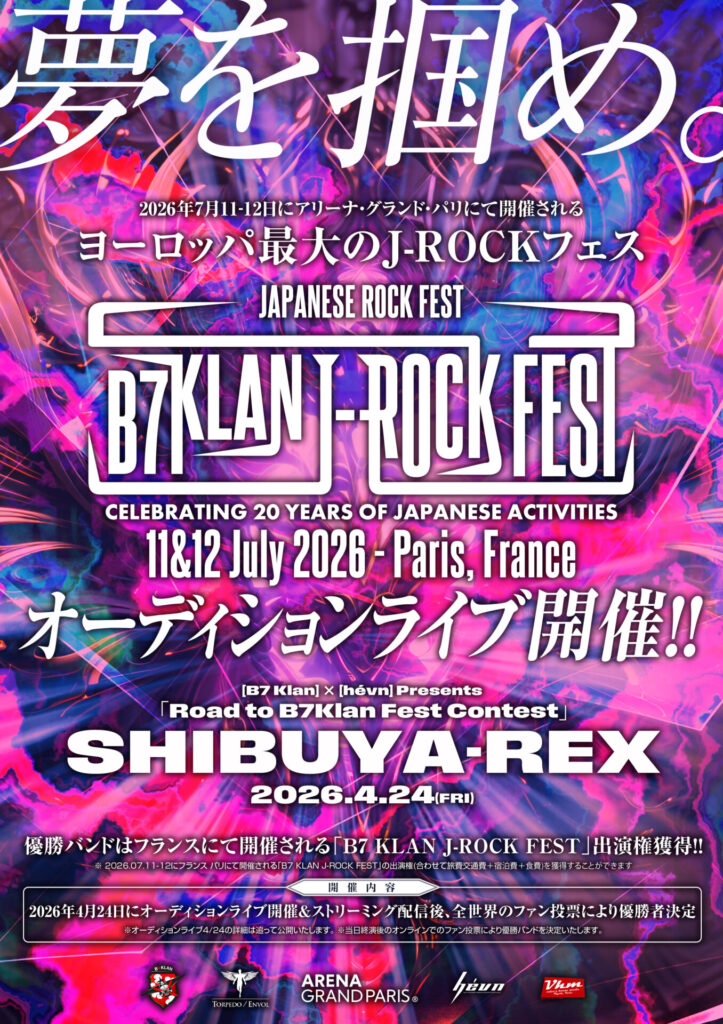 7月11日・12日に、フランス(アリーナ・グランド・パリ)にてヨーロッパ最大のJ-ROCKフェス「B7 KLAN J-ROCK FEST」が開催される。