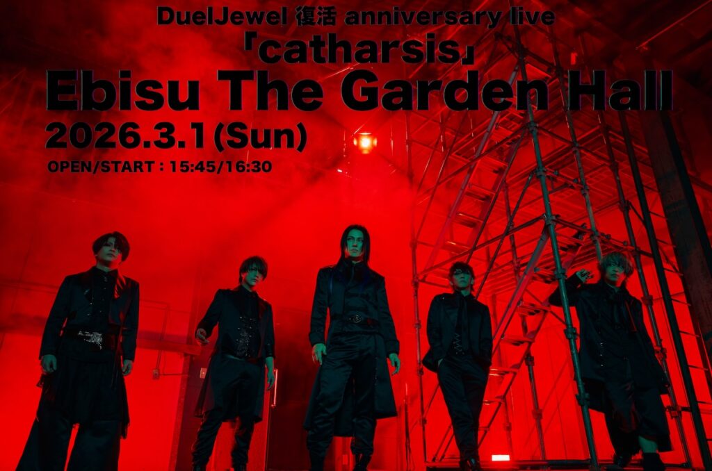 3月1日、「DuelJewel 復活 anniversary live『catharsis』」恵比寿 The Garden Hall公演が間近に迫るDuelJewel。この日はDuelJewelにとって復活7周年の記念日となる。公演に先立ってDuelJewelの新アーティスト写真が解禁された。